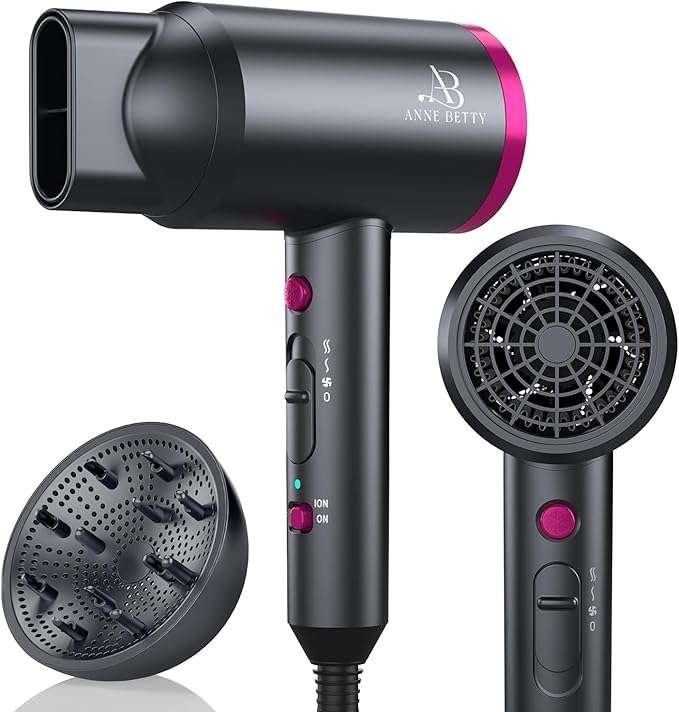 ANNE BETTY Ionic Hair Dryer with Diffuser, Powerful 1800W Blow Dryer