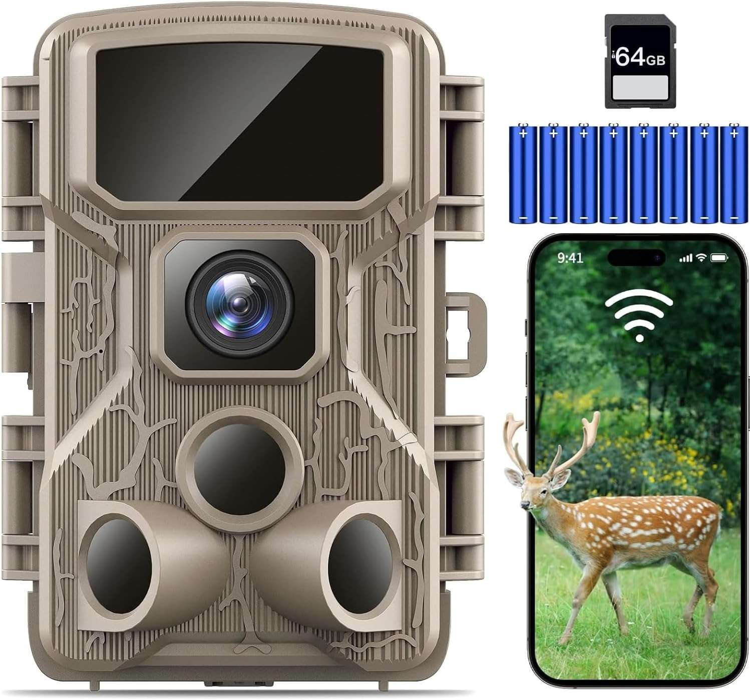 Punvoe Trail Camera WiFi 4K 64MP with 64GB